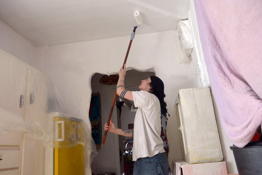 Peindre Au Rouleau De Peinture Comment Peindre. Peindre un plafond est l'étape indispensable lorsque l'on refait la peinture d'une pièce ! Cependant, l'étape rebute pas mal d'entre nous persuadés que cela est fatiguant, laborieux et qu'il y aura forcément des traces et se demandent comment bien peindre. Plus on met de temps à peindre, plus la peinture aura le temps de sécher entre deux coups de rouleau. Perche télescopique avec tête polyvalente usage avec un rouleau usage avec une brosse usage avec une spatule amovible usage avec un balai usage avec un pinceau usage avec des pinceaux de raccord. Choisissez un rouleau à manche télescopique pour pouvoir peindre le plafond depuis le sol. Videz la pièce dont vous peignez le plafond. Vous vous demandez comment peindre un plafond ? Vêtements de protection (lunettes, gants, vêtements qui ne pour peindre sans effort : 6.) peindre le plafond au rouleau (de préférence avec un rouleau spécial plafond « antigoutte ») en tirant bien la peinture et toujours dans le même sens (de préférence dans le sens possible des rayons j'ai utilisé un rouleau monté sur un manche télescopique c'est moins fatigant. Évitez les rouleaux à manche télescopique pour peindre votre plafond, ils ne permettent pas assez de précision. Travailler un plafond sur sa longueur, ou avec des bandes trop larges, risque de laisser des traces de reprise. Un escabeau ou un échafaudage roulant, un rouleau adapté au support, un manche télescopique. Pour peindre votre plafond avec facilité, il vous faudra le bon matériel. Comment peindre un plafond sans faire de trace et dans les règles de l'art ? Conseils pour peindre son plafond comme un pro !