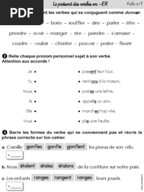 Evaluation Grammaire Conjuguer Au Present Ce2 Evaluation Ce2 Ce2 Evaluation - Sa Forme Composée Est Le Passé Composé.