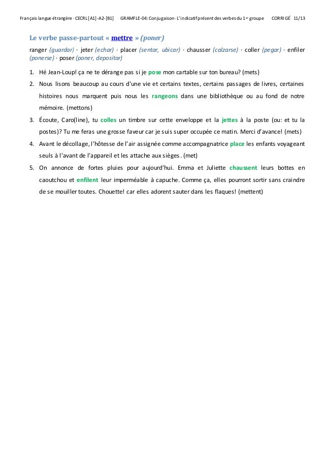 Le Present De L Indicatif Lessons Tes Teach : Verbe du 3ième groupe se conjugue avec l'auxiliaire avoir verbe modèle verbe pouvant être transitif ou intransitif.