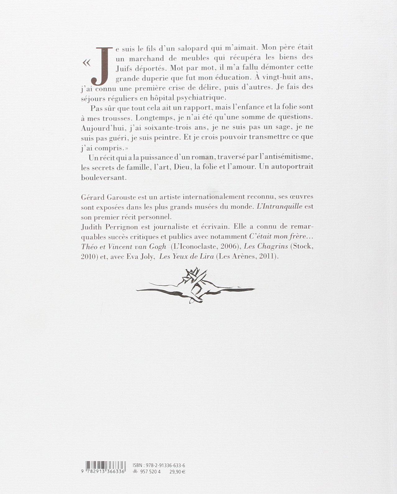 L Intranquille Le Blog De Ritournelle. Gérard garouste est un peintre, illustrateur, décorateur et sculpteur français. Intitulée en chemin, l'exposition est l'occasion de revenir sur le parcours parfois énigmatique et tourmenté de ce peintre et sculpteur. Gérard garouste, né le 10 mars 1946 à paris, est un peintre, graveur et sculpteur français. Garouste , avec judith perrignon.+ 25 ex tirages de tête sous coffret, enrichis d'une estampe originale signée de g. En 1977, il présente au palace le classique et l'indien, un spectacle dont il est l'auteur, le metteur en scène et le décorateur. À rome, la villa médicis accueille une rétrospective de son oeuvre, à partir du 14 octobre. Gérard garouste, l'intranquille, version grand format illustrée de dessins originaux de g. Открыть страницу «gérard garouste (page officielle)» на facebook. Sauter à la navigation sauter à la recherche. L'intranquille de g.garouste et j.perrignon (version grand format illustré). Autoportrait d'un fils, d'un peintre, d'un fou. Peintre internationalement reconnu, gérard garouste vient de publier un magistral récit autobiographique, « l'intranquille ». Preview — l'intranquille by gérard garouste. Grâce à garouste j'ai récupéré ma personalité d'enfant, celle qui était renfermée, antisocial, préocuppée que par ses jeux mentales et ses obsessions, s'en foutant du monde, des gens et de. Dans son livre l'intranquille, gérard garouste raconte avoir affronté des crises et des délires psychiatriques, pour lesquels il a été traité, notamment.