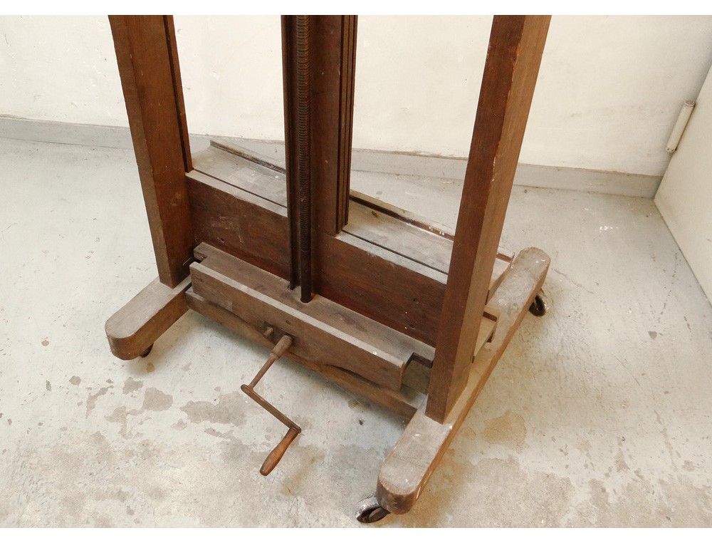 Chevalet droit d'atelier d'artiste peintre, en bois massif avec manivelle et crémaillère, solide et stable pour de grandes peintures.
