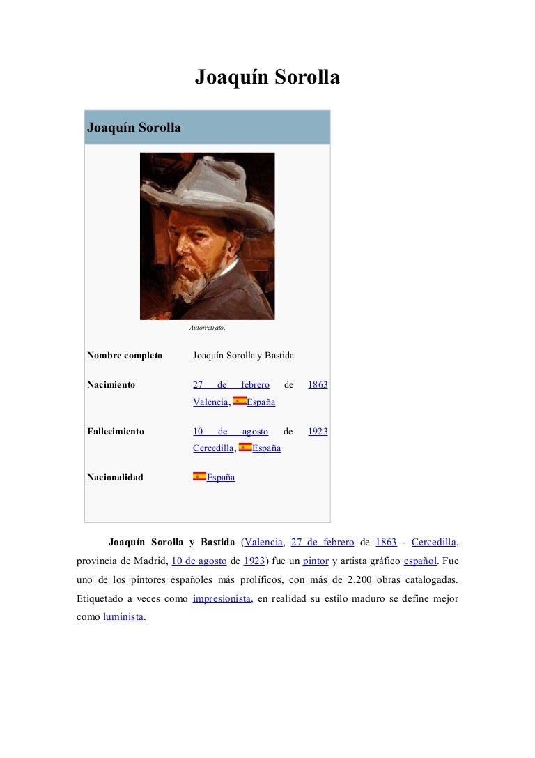 Joaquin Sorolla Biografia Joaquin Sorolla Y Bastida Valencia 27 De Febrero De 1863 Cercedilla 10 De A Produccion Artistica Pinturas De Sorolla Pinturas : His Birthday, What He Did Before Fame, His Family Life, Fun Trivia Facts, Popularity Rankings, And More.