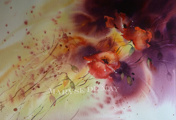 Aquarelle l'aventure avec les fleurs, maryse de may.