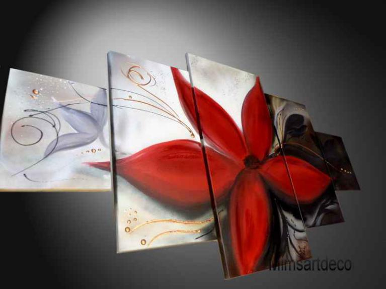 Tableau Murale Imprime 5 Pieces En Mdf Motif Fleur Rouge M4 Wamia Tn Deco Murale - .Fleur, Au Superbe Effet Glossy.