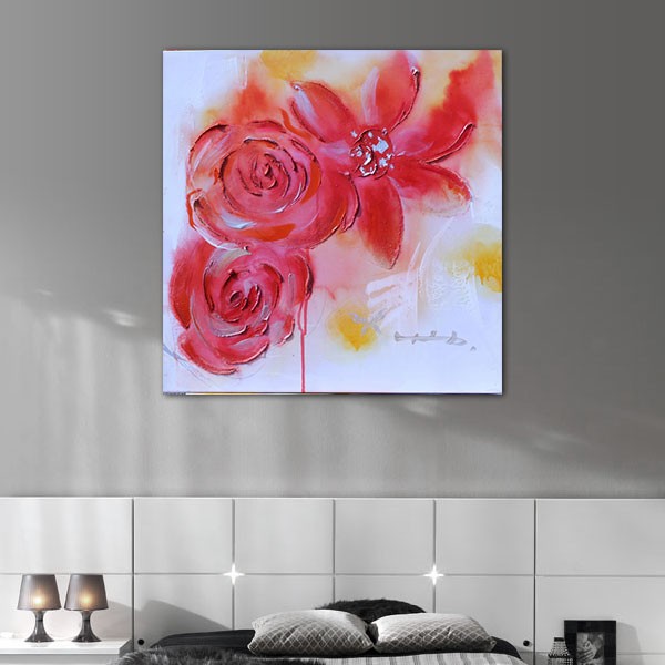 Tableau Moderne Rose Rouge Tableaux Fleurs Contemporains : Les Fleurs Rouges Sont À L'honneur À Travers Ce Tableau Contemporain Moderne.