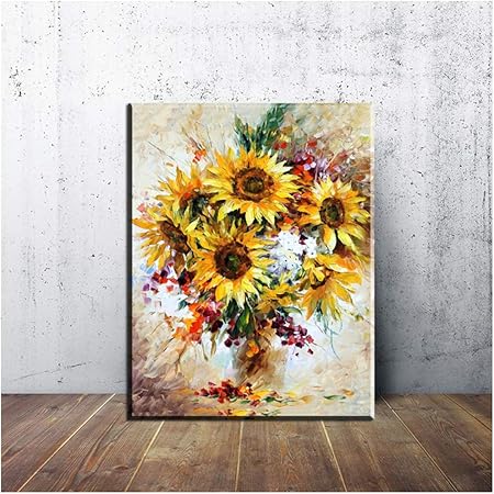 Niemengzhen Impression Sur Toile Monet Vase De Tournesols Art Mural Impressions Peinture Murale Photo Murale Salon Peintures Murales 27 5 X 35 4 70x90cm Sans Cadre Amazon Fr Cuisine Maison , Tableau nature morte tournesol sur panneau.